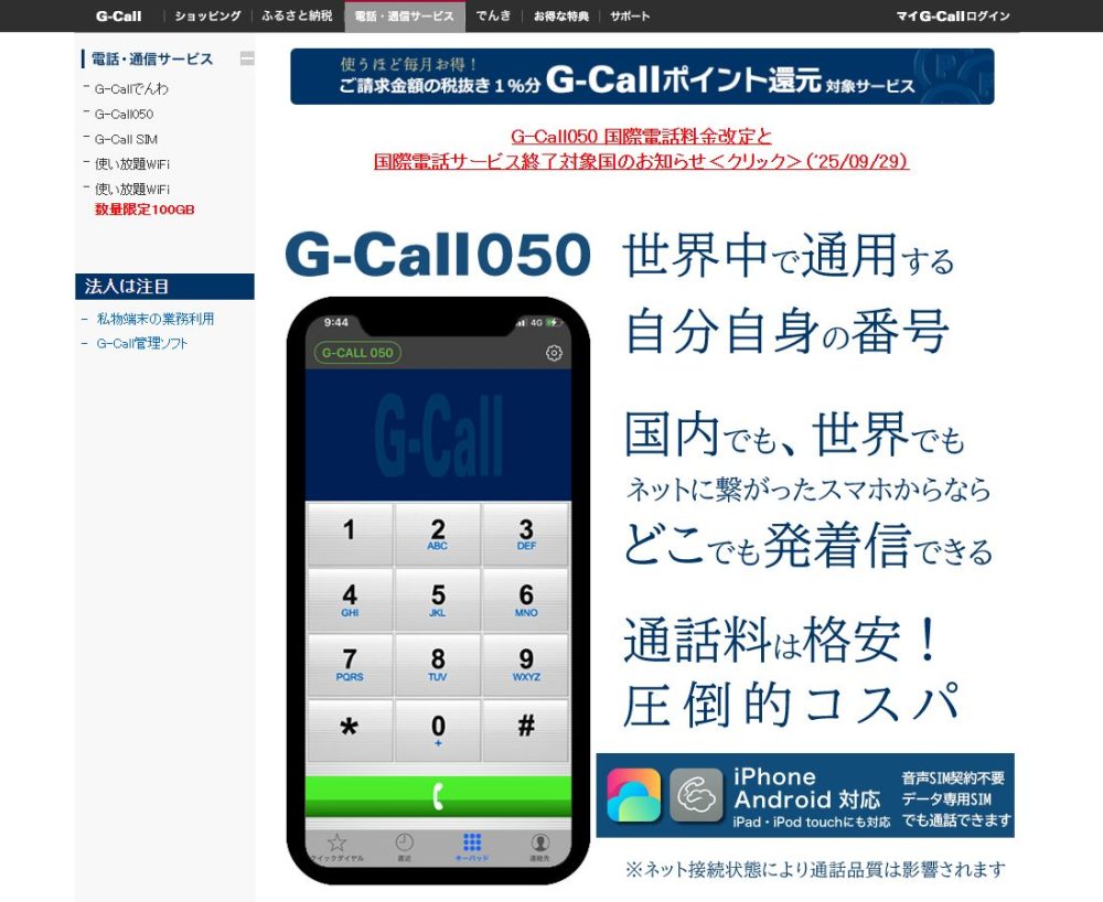 050アプリ④:G-Call 050