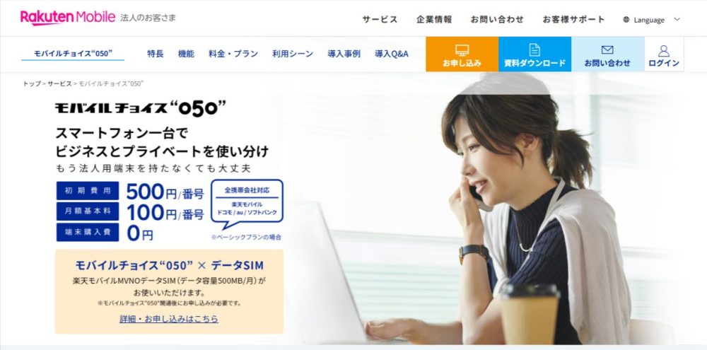 スマホアプリをインストールするだけなので、新たな端末の購入は一切不要です。低コストで仕事用の電話番号を取得することができるので、初めて050電話番号を利用する方にも試しやすいサービスとして、個人から企業まで幅広いビジネスマンに選ばれています。