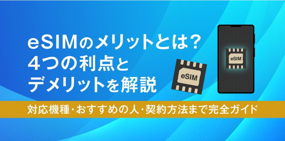 eSIMのメリットをわかりやすく解説。SIMカードとの違いや4つのメリット・4つのデメリット、対応機種、利用できる携帯会社、契約方法まで紹介します。eSIMがおすすめの人や活躍するシーンも解説しているので、eSIMを検討している方はぜひ参考にしてください。